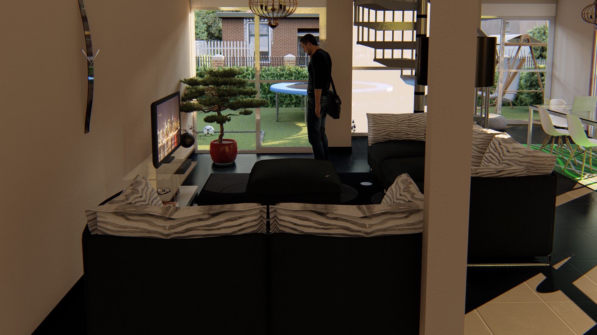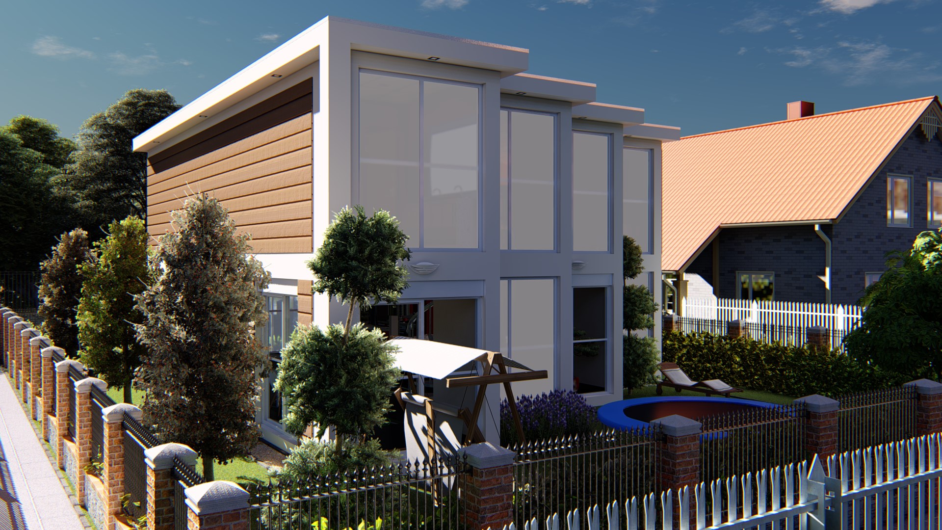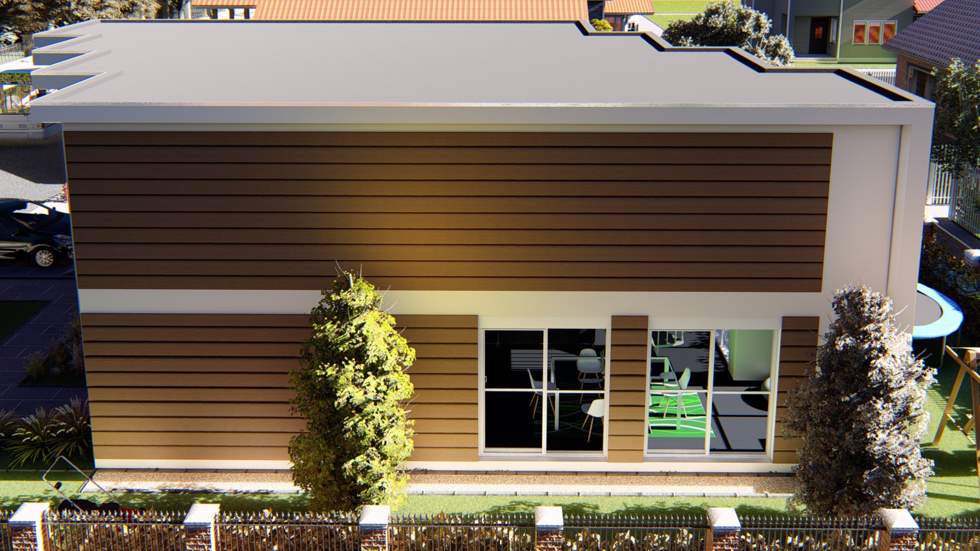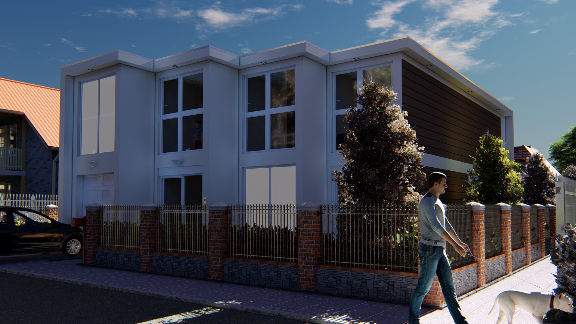 Dar 8M2.1 Chelsia تتكون من ثماني وحدات. هذا المنزل المستقل هو تصميم جميل مع الكثير من المساحة المفتوحة في الطابق السفلي وأخرى في النطاق الخارجي للعب، إضافةً إلى النوافذ الكبيرة. هناك مخزن لركن دراجة نارية و آخر لغسل الملابس. في هذا المثال ، اخترنا الحمام في الطابق السفلي و يمكنكم تغييره بما يناسبكم مثل مكتب و ذلك لتسهيل الحياة العملية اليومية. في الطابق الأول لديك 4 غرف نوم جيدة الحجم وجميعها تتمتع بإمكانية الوصول إلى غرفة المعيشة المشتركة كما يتوفر على حمام مع مرحاض منفصل.