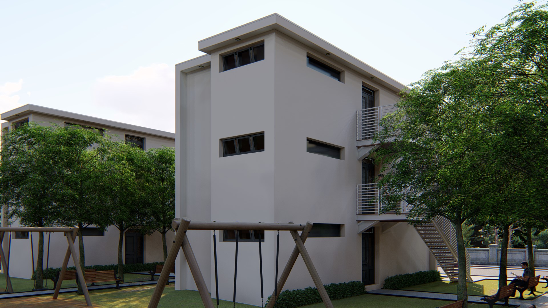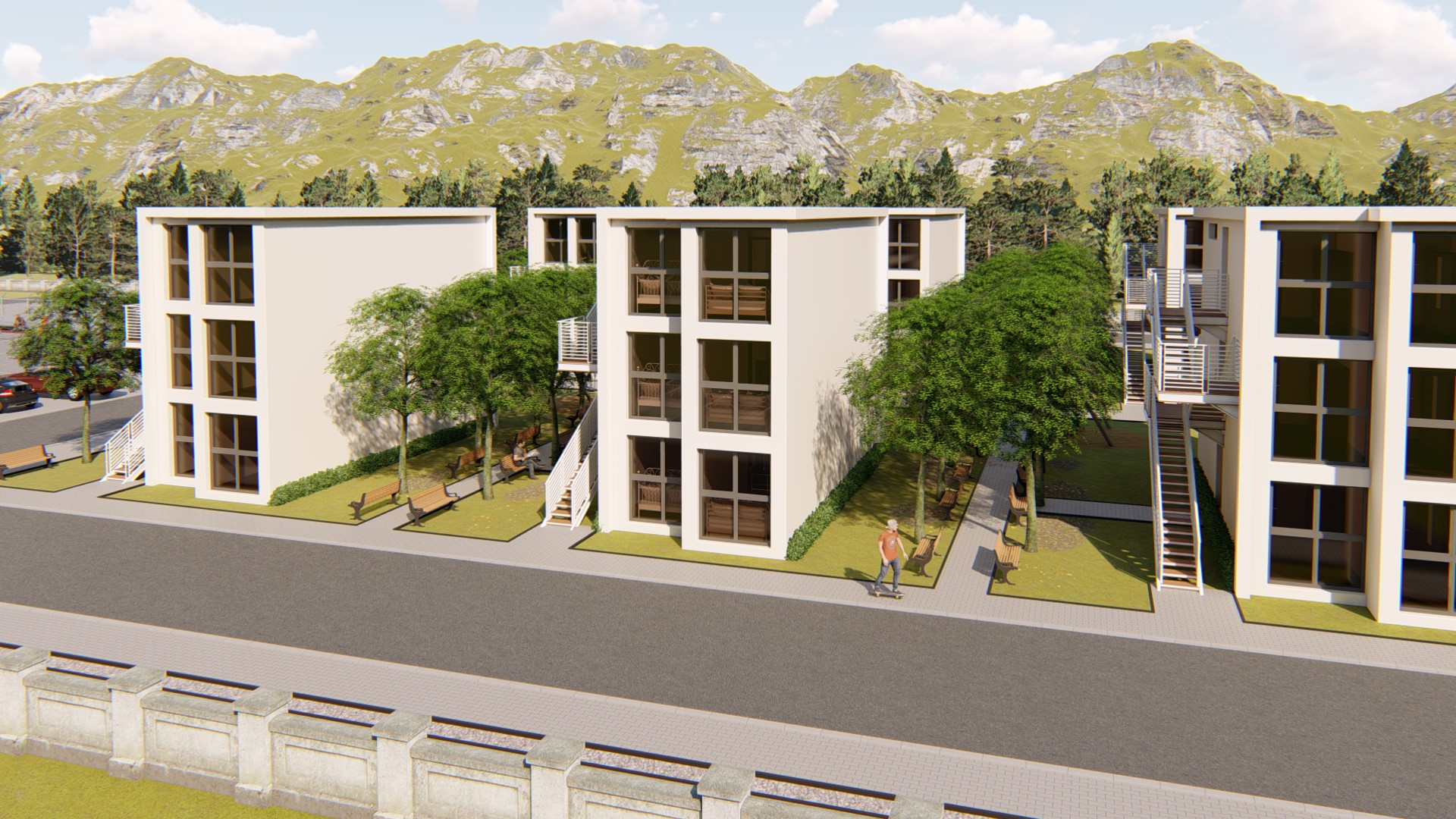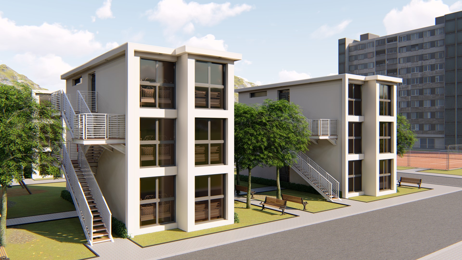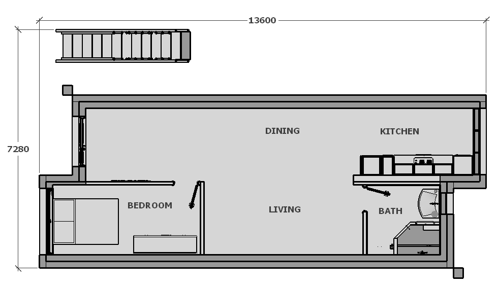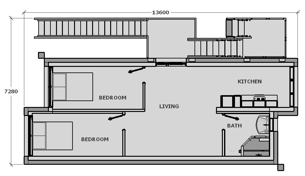 تم تصميم هذا المثال باستخدام ست وحدات من Dar 2M1.2 Fransa with Ref.Nr. DL001007 لبناء 3 شقق جميلة. كل شقة ستوفر منزلاً كاملاً للعائلات الشابة أو المسنين الذين يرغبون في تخصيص بعض المساحة للأحفاد. يحتوي على غرفتي نوم و منطقة مفتوحة للطهي مع مساحة معيشة لتأثيثها و تكيفها حسب ما يناسبك, إضافةً إلى حمام صغير. توفر هذه الوحدات السكنية كل ما تحتاجه الأسرة للعيش بسعادة.